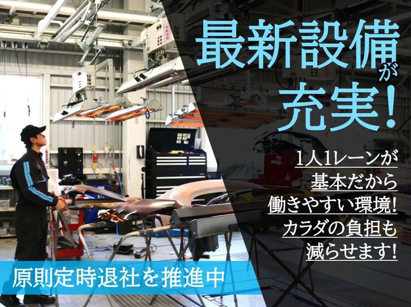 職種/仕事内容 | 仕事内容 □■この求人のPOINT■□ 伊藤忠グループ/2024年5月設立 ◎月給に加え毎月最大16万円のスキル給 *入社後すぐにスキルチェックを実施し、 技術を正当に評価、給与へ反映します。 ◎最新設備で作業効率と安全性を両立 (1人1レーン制/1拠点でフレーム 修正から仕上げまで完結) ◎あらゆるメーカー・ 車種の修復を経験可能 幅広いスキルを習得できます。 ◎学歴関係なく、意欲と実力で リーダーや工場長へ! ◎現場主導のチーム制を導入 若手・中堅問わず、 互いに支え合う文化です。 ◎原則定時退社で残業少なめ 土日は基本休み。 無理なく働ける勤務体制です。 ◎作業ノルマなし。目の前の仕事に 集中できる職場です。 □■お任せするお仕事は■□ 事故や経年によって損傷した車両の 修復を行います。 「お客様の大切な車を、 自分の手でよみがえらせる」 それがこの仕事のやりがいです。 <具体的には> フレーム修正、パネル交換、パテ処理、 塗装仕上げまで修復に関わる工程を、 スキルに応じて段階的に 習得していただきます。 自社基準に沿った技術体系があるため、 品質も安定しやすく、経験が浅い方でも 着実にステップアップできます。 □■充実の工場設備■□ 毎日の清掃と整備を徹底し、 作業しやすく安全な環境を整えています。 「職人任せ」ではなく、 設備・動線・空調・照明まで こだわった職場です。 01. トラバーサーレール 02. キュービックタワー・リフト 03. 床下集塵機システム 04. プッシュプル型塗装ブース 05. 水性塗装 06. 天井吊下式アルティメットヒーター □■充実した研修・教育体制■□ 未経験者でも成長できるように 段階別の研修制度を整備。 現場任せではなく、学びながら 仕事に取り組めるよう支援しています。 <研修の一例> ◎入社時研修 (先輩とマンツーマンで学ぶ) ◎新機構研修 (最新自動車の構造・装置を学ぶ) ◎鈑金修正システム研修 ◎塗装・調色研修 ◎コンプライアンス研修 など □■目指すは日本一■□ 私たちが目指しているのは、 「日本一の鈑金工場」です。 品質はもちろん、お客様が 安心して任せられることを重視。 その一貫として、 国交省の鈑金ガイドラインに基づき、 作業前後の写真撮影などの情報開示を 業界でいち早く開始するなど、 透明性の高い工場運営を行っています。 あなたも一緒に、日本一の工場を 築いていきませんか? ==== 長い目で勤務できる体制 ==== □■評価・報酬について■□ 日々の仕事のがんばりを反映する 評価制度のもと、年齢・社歴に関係なく 平等にチャンスがあります。 (定期的に評価。基本給・賞与へ反映) また、個人の技術と社内資格を 反映させた「スキル給制度」を 導入しています。 ▼ スキル給/月給に加えて最大16万円 ※技術力に応じて支給 <評価例> 【月額スキル給10万円】 ◎パテを使用した軽鈑金作業ができる ◎ボルト止めパネルなどの部品交換ができる ◎下地作業ができる ◎耐スリクリアを含む磨きができる etc. 【月額スキル給13万円】 ◎切換パネル交換ができる ◎骨格修正ができる ◎調色作業ができる ◎内板・外板塗装ができる etc. 【月額スキル給16万円】 ◎大破修理ができる ◎塗装の全工程ができる ◎高品質な作業と人材育成ができる ◎工場長の補佐業務ができる etc. ※上記スキルに加え、個人・店舗目標などの 達成率で総合的に判断いたします。 □■キャリアパス■□ 技術/管理/マネジメントと 多方面のキャリア形成を支援します。 ▼ ◎鈑金塗装の技術を極める ◎希望に応じて管理職を目指す (フロント/工場長/ブロック長) ==== 私たちはこんな会社です ==== □■WECARSについて■□ 私たちは、伊藤忠グループ参画の下、 2024年5月に発足した 中古車販売・買取企業。 現在、 全国で約250店舗を展開しています。 □■WECARSが大切にしていること■□ 1. お客様ファースト (お客様の満足度・納得感の向上) 2. お客様ファーストを実現するための 組織・社員としての成長 3. 信頼される中古車市場の創造をリード ★人事制度改革、 人材育成への取組強化、 コンプライアンス体制構築等の 改革を推進しています。 |
