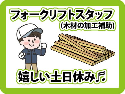 職種/仕事内容 | 仕事内容 嬉しい土日休み&日勤のお仕事! 資格・経験を活かして活躍できます! 現在男性スタッフが活躍中! カウンター式フォークリフトスタッフを募集! <おもなお仕事内容> ・フォークリフトで袋詰めした商品を移動 ・木材を加工機にセットする作業 ・チップの袋詰め などのお仕事をおまかせいたします。 丁寧な指導とサポートがあるので 未経験の方でもご安心ください! \オススメポイント/ ・高時給の1,200円 ・日勤で働きやすい! ・週払いOK! 急な出費でお困りの時も安心です。 ・フォークリフトの免許をお持ちの方は 資格を活かせる! また、どんなお仕事か一度見学してから お仕事するかを決めることも可能ですよ。 皆さまが長期安心して働けるように 充実した待遇でお待ちしてます! 最後までご覧いただきありがとうございます! 「未経験だけど大丈夫?」 「ブランクが長くて不安」 など、ご応募の前に不安に感じることが ございましたら、まずは一度ご相談下さい! 皆さまからのご連絡を心よりお待ちしております。 |