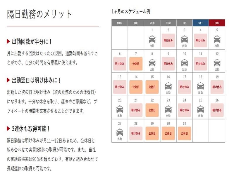 職種/仕事内容 | 仕事内容 ⏩ 未経験から安定収入を実現できる環境 入社後1年間は【1勤務12,500円保証】あり(規定有)。 月24日勤務で月収30万円以上も安定して目指せます。 ⏩ 創業100周年×大手グループの安心基盤 全国4,000名超の日交グループ。 入社準備金10万円支給(規定有)で転職も安心です。 ⏩ ライフスタイルに合わせて選べる働き方 隔日・日勤から選択OK。 隔日勤務なら「明け休み」でしっかり休めます。 ⏩ 配車メインで効率よく稼げる 法人契約+配車アプリ「GO」(承諾率80%超)中心。 流し営業ほぼなしで安定収入を確保できます。 ⏩ 普通免許からプロドライバーへ AT限定OK・未経験歓迎。 二種免許は最短5日〜取得可能(費用会社負担/規定有)。 ⏩ 定着率96%の働きやすさ 関西10拠点から勤務地を選択可能。 全営業所に休憩室・仮眠スペース完備。 ⏩ 生活面も安心のサポート体制 月8,000円〜の寮・社宅あり。 社員食堂も完備し、毎日の生活を支えます。 - 【仕事内容】 ⭐安心・安定の送迎業務 お客様を目的地まで、安全で快適にお送りするお仕事です。 ⭐ 配車中心で安定収入を実現 ・最新無線+配車アプリ「GO」(承諾率80%超)を導入 ・法人契約・チケット利用多数で安定した乗車数を確保 ・プロ野球・Jリーグなど大型イベント送迎の実績も豊富 ⭐ 流し営業ほぼなしで働きやすい 効率よく乗務できるため、未経験でも安定収入が可能。 再雇用制度もあり、年齢を問わず長く活躍できる環境です。 - 【淀川営業所の特徴】 ✨ 安定して稼げる大阪中心エリア 淀川・北・中央・西区、豊中市などがメイン。 通勤・通学・通院・観光・法人利用まで需要が豊富で、 時間帯を問わず安定した乗務が可能です。 ✨ 法人・報道に強い信頼の営業所 報道関係をはじめ、大口取引先が多数。 ハイヤー・ジャンボタクシーも完備し、 重要な送迎を担うプロの仕事に携われます。 ✨ 落ち着いて働ける職場環境 ベテラン中心の和やかな雰囲気。 相談しやすく、未経験の方も安心して成長できます。 ✨ 屋内車庫完備で快適勤務 雨・猛暑・寒さの影響を受けにくい環境。 洗車や整備も快適に行えます。 |