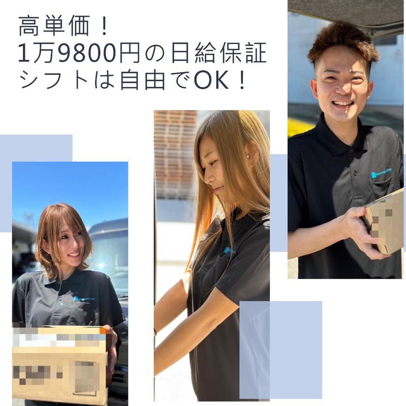職種/仕事内容 | 仕事内容 \ はじめてでもシッカリ稼げる / \ 日収1万9000円以上可 / 誰でも一度は耳にしたことがある 大手宅配会社の宅配ドライバー! ネット通販市場の拡大により 業績は右肩上がり! 今後も安定収入が見込めます。 充実のサポート体制が整っているので どなたでも始めやすさ抜群なんです! 30代~40代スタッフが活躍中! 女性の方も多数活躍中♪ HPもぜひご覧ください♪ https://puroguresu.jp/ -・-・-・-・-・-・-・-・-・-・-・-・ *ガソリンカード支給 *車両をご用意(リース) *出勤日数は自由に設定OK *スポット、チャーター案件もアリ *稼働拠点は全国に展開中 -・-・-・-・-・-・-・-・-・-・-・-・ < お任せするのは… > ■企業専属の宅配便ドライバー 軽自動車(軽バン)での 日用品配送がメインになります。 片手でラクラク運べるものが 多いので体力的な負担も少なめです。 配送先は名古屋市内。 住所を入力すると道案内をしてくれる アプリが使えるので道順などが 分からなくても大丈夫ですよ! 配達は基本的に一人なので、 人間関係で悩む心配もありません! ルート配送やスポットの案件もあるので 働き方はお気軽にご相談ください。 \ やればやるだけ収入もアップ / 無理なく自分に合った働き方がしたい、 とにかく稼ぎたいという方にオススメ! 慣れてきたら、 目標収入に合わせて出勤日数の調整OK! 月収50万、60万と高収入も実現可能です。 ================ チョットした疑問にお答えします! ================ ■Q:方向音痴だから心配です… 目的地までの道案内をしてくれる 専用アプリが使えるので、 誰でも簡単に目的地にたどり着けます! ■Q:未経験だけど本当に大丈夫? 入社してから慣れるまでは、 先輩がマンツーマンで配達に入ります。 出勤日数も希望に合わせて調整可能なので、 物足りなければ増やせますし、 きつければ減らせるので安心ですよ! ■Q:給与が出るまでのガソリン代は? ガソリンカードをお渡ししているので、 その場での現金支払いは不要です! (後でご自身でご精算いただきます) |