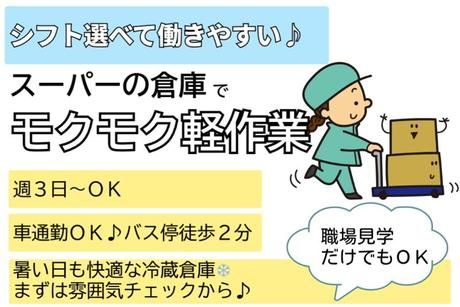 【週3~OK】女性活躍中!スーパーの倉庫で簡単軽作業