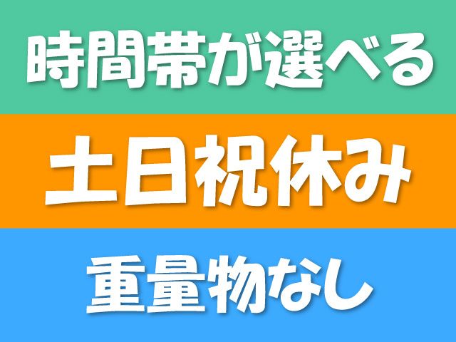 時間帯を選べる軽作業スタッフ!シニア活躍中 土日祝休み/未経験大歓迎/無料送迎バス有/重量物なし