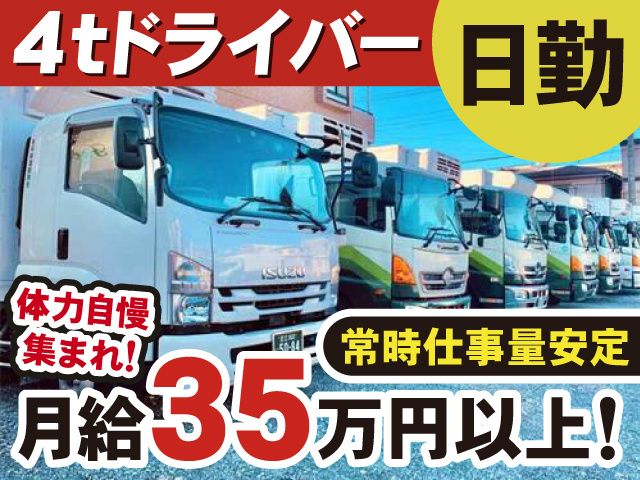 職種/仕事内容 | 仕事内容 \正社員4tトラックドライバー募集/ 人気の日勤ルートで冷凍食品を中心に 冷凍・冷蔵の食品を配送していただきます。 当社は首都圏を網羅した配送ネットワークで 豊かな「食」を支えています。 \おすすめポイント/ ・賞与年3回(8月・12月・4月) ・昇給あり ・長距離なし ・ルート配送 ・免許取得支援制度あり(中型・大型) ・月給35万円以上 ・年収450万円以上可! ・土曜日は15時台に上がれます! ・日祝は固定休み ・ETC装備 ・バックアイカメラ ・ドライブレコーダー ・デジタコ搭載 【正社員/日勤4tドライバーの仕事内容】 日勤の時間帯で冷凍食品の集荷・配送をお任せします。 <仕事の1日のスケジュール例> 〇引取、配送先の確認・運行前点検・点呼 〇大井や豊海などの冷蔵倉庫へ集荷 ※状況を見て(1時間の休憩を取ってもらいます!) 〇東京、埼玉、神奈川など関東近郊の各納品先へ 〇その後、帰社して1日が終了です。 ほぼ決まったコースへ配送して頂くので、 荷物の積み方・集荷先・配送先を覚えるだけ! プライベートを充実させたい方にもオススメ! 朝は少し早いですが夕方あがりのドライバー職です。 〇趣味や遊びの時間がたっぷり取れる 〇家族との時間がしっかり取れる 〇朝・夕の通勤ラッシュや渋滞を避けられる \有給取得率も非常に良い会社です/ 2023年度、有給取得実績61.6% プライベートも充実しやすい環境です! \こんな経験活かせます/ ・食品配送ドライバー ・ルート配送ドライバー ・2tドライバー ・4tドライバー ・中型ドライバー ・大型ドライバー ・トラック運転手 \幅広い年代の方を積極採用中/ 20代・30代・40代・50代など 中高年の方、シニア層の方まで、 男女問わず活躍中! \磐栄ホールディングスグループ/ 有限会社平林運輸商会は 磐栄ホールディングスグループです。 大手ならではの、 しっかりとした研修や休日など 安心・安定して働けます。 異業種からのチャレンジ、 未経験の方など、 ぜひご応募ください。 お電話でのご応募も可能です。 まずはお気軽にお問合せください。 有限会社平林運輸商会 03-3880-2811 (正社員/日勤4tドライバー採用係) 採用サイト https://entori.jp/hirabayashi-bhc-group |