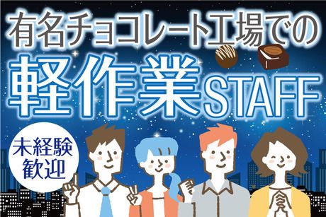 職種/仕事内容 | 仕事内容 \\ ここがおすすめ! // ◎スタートするなら今!人気のお仕事で大量募集中♪ ◎「やってみたい」で始められる、気楽な軽作業! ◎夜型ライフ応援!夜勤でしっかり月26万以上! ◎週末は自分時間♪年間休日125日でゆとりある働き方 ■チョコレートに囲まれて、コツコツできるお仕事 大手お菓子メーカーの工場で、 チョコレートづくりに関わるレアなお仕事! 未経験でもすぐ慣れるシンプル作業なので 初めての工場勤務にもピッタリ◎ ●チョコをほぐす作業 くっついたチョコを手でサクッとバラすだけ♪ ●チョコのチェック 割れてないかな?形はキレイかな?を確認。 不良品があったら取り除いて、正しいものと交換! ●フィルムの補充 お菓子の箱にかかっている透明フィルムをセット! ●箱詰め 完成したチョコを箱にきれいに並べて詰めるだけ◎ \お仕事のポイント/ 作業はローテーション制なので、ずっと同じ作業ではありません。 例:A作業(30分)→B作業(30分)→C作業(30分) 気分を変えながら働けるので、飽きずに続けられます♪ ■未経験でも、ゆるっと始められる安心感 最初は先輩がマンツーマンでしっかりサポート! 3~4週間かけて、ゆっくり丁寧に教えてくれるので、 「これ少し不安かも…」という作業も、 ゆっくりと慣れていけます◎ 同じラインの仲間と声をかけ合いながら進めるので、 自然と馴染みやすい雰囲気です。 わからないことがあっても「ちょっと教えて」とすぐ聞ける、 そんな安心できる環境が整っています。 ノルマなし&自分のペースでOK! コツコツ作業が好きな方にぴったりな、 無理なく続けられるお仕事です☆ ■“自分らしく”が叶う、ちょっと嬉しい職場環境 <髪型・髪色は自由!> ノーメイクでもOKだから、朝の準備もラクちん。 自分らしいスタイルで働けます。 <シャワールーム完備(男女別)> 仕事終わりにさっぱりリフレッシュ。 ドライヤーもあるので、身だしなみも安心です。 <休憩室は男女別&リクライニングチェア付き> ゆったりくつろげる空間で、ほっとひと息。 お茶は飲み放題、 コーヒーマシンも設置!(1杯120~190円ほど) <食堂&売店も充実!> 冷蔵庫・電子レンジも自由に使えて便利。 食堂はタッチ決済OKで、セットメニューも1食500円以内! うどんは220円でトッピングも選べてコスパ抜群。 週替わりメニューで飽きずに楽しめます。 売店では自社商品が社割で買えるのも嬉しいポイント! ■働きやすさもばっちり。設備充実の大手工場 有名お菓子メーカーでのお仕事。 みんなに愛されるチョコ菓子づくりに関われる、 ちょっと誇らしいお仕事です。 「この商品、自分が関わってるんだ」 そんな嬉しさ、きっと感じられます。 \快適&清潔な職場環境もポイント!/ *冷暖房完備で、季節問わず快適に働ける。 *給水機があちこちにあるので水分補給もこまめにOK。 *作業着(ジャンパー)貸与あり。 *エアシャワー&コロコロで清潔してから作業開始。 *手洗いは30秒タイマー付きで、衛生管理もばっちり。 |
