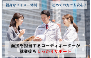 選考プロセス | 選考手順 ☆スマホ・PCで簡単!WEB面談実施中! ≪オンライン面接OK≫ 最短10分で面接が可能です! 面接時にご希望の条件を教えて下さい! ※履歴書は不要ですが、事前登録フォームへの入力をお願いしております。 ≪対面面接も実施中≫ ・オンラインでのやり取りが苦手な方 ・担当者と直接会ってからお仕事を紹介して欲しい方 お気軽にどちらが良いかお申しつけ下さい! ≪工場見学≫ 面接後には工場見学を実施! 「仕事のイメージがわかない」 「働いてからギャップがあったらどうしよう」 などの不安を、事前に解消できます。 見学後、「やってみたい!」と感じた場合に正式応募でOKですので、 ぜひお気軽にお問い合わせください! ≪就業開始≫ 新しい職場へ出勤するのは不安ですが、 入社当日は弊社スタッフも同行します! 就業後のアフターフォローも同じ担当がしますので、 何かあれば安心して担当者のスマホへ連絡下さい! 面接地 ◆出張面接 - ご自宅の近くまで伺います! ◆オンライン面接 - 応募から最短10分で対応可能! |