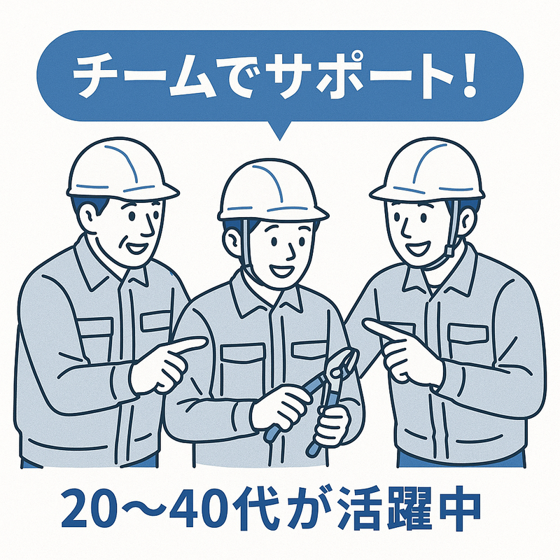 対象となる方 | 求めている人材 《必須条件》 ■高卒以上 ■普通自動車運転免許 《こんなアナタにオススメ‼》 ◆建設業に興味がある方 未経験でも大歓迎!建設業に興味を持ち、 やる気をもって取り組める方をお待ちしています。 ◆チームでの協力を大切にできる方 現場では2~4人のチームで作業を行います。 仲間と協力しながら目標を達成できる方が活躍できます。 ◆体を動かすことが好きな方 建設作業は体を使うことが多いです。 手を動かしたり体を動かしたりすることが好きな方に向いています。 ◆安全意識を持てる方 現場では安全が最優先です。 安全に対する意識を持ち、 ルールを守ることができる方を求めています。 ◆コミュニケーションを大切にできる方 現場ではしっかりとしたコミュニケーションが必要です。 意見をしっかり交わし、協力して作業を進めることができる方が望ましいです。 未経験からスタートした 異業種から転職してきた従業員も活躍中‼ まずは当社を志望したい理由・ 気になった理由を面接で教えてくださいね✨ 年齢の条件と理由:あり(例外事由1号・65歳未満(定年のため)) |