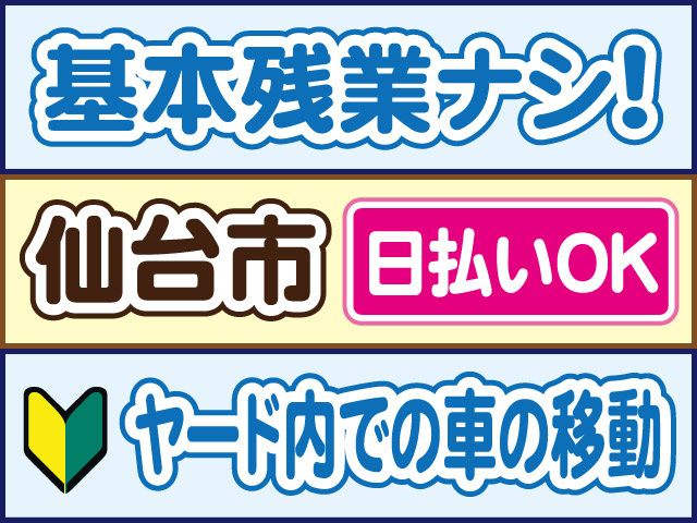 【仙台市宮城野区】車の移動作業 未経験OK・大型免許を活かそう 日勤・週休2日、高時給1,400円