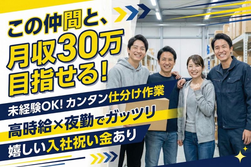 職種/仕事内容 | 仕事内容 ⭐安定収入&好条件で働こう!⭐  ̄ ̄ ̄ ̄ ̄ ̄ ̄ ̄ ̄ ̄ ̄ ̄ ̄ ̄ ̄ ✅月収30万円以上も可能! ✅入社祝い金あり(※規定) ✅今だけ!翌日振込対応中 ✅長期で安定して働きたい方歓迎! ━━━━━━━━━━━━━━━ ▶▶ お仕事内容 ◀◀ ━━━━━━━━━━━━━━━ トラックで届いた荷物を ベルトコンベアに置いていく簡単作業! ・体を動かすのが好きな方にピッタリ ・未経験でもすぐ慣れる♪ ━━━━━━━━━━━━━━━ ▶▶ 勤務時間・給与 ◀◀ ━━━━━━━━━━━━━━━ ⏰ 19:00~22:00 ⇒ 時給1400円 ⏰ 22:00以降 ⇒ 時給1750円 ◆1万円まで日払いOK!(翌日振込) (例)2/1勤務 → 2/2 15時までに振込 ※残りの給与は月末締め/翌15日支給 ━━━━━━━━━━━━━━━ ▶▶ 働き方のポイント ◀◀ ━━━━━━━━━━━━━━━ ✔週3日~OK(月~金の間) ✔短期も相談OK/Wワーク歓迎 ✔車・バイク・自転車通勤OK ✔終わったら即帰宅でストレスなし! ※入社祝い金は規定あり ※翌日振込は期間限定です |