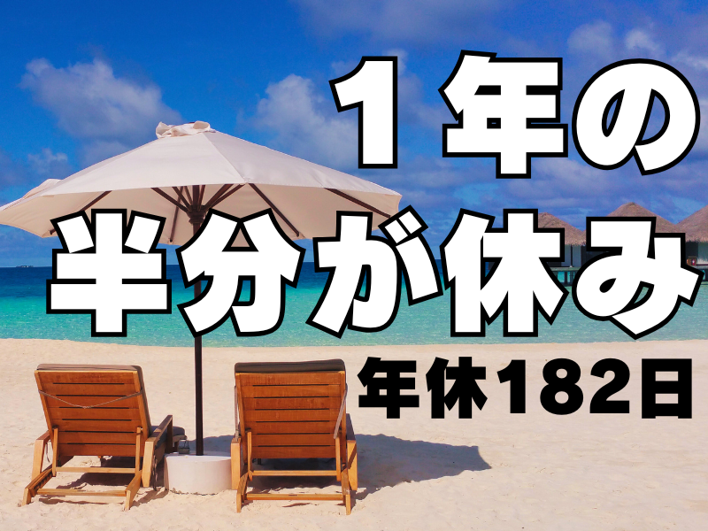 休日休暇 | 休暇・休日: \人気の働き方です/ 2日働いたらすぐに休み ・2勤2休の固定シフト制 ・年間休日182日 休日はのんびり島ライフを満喫! "働く"も"遊ぶ"も楽しもう! |