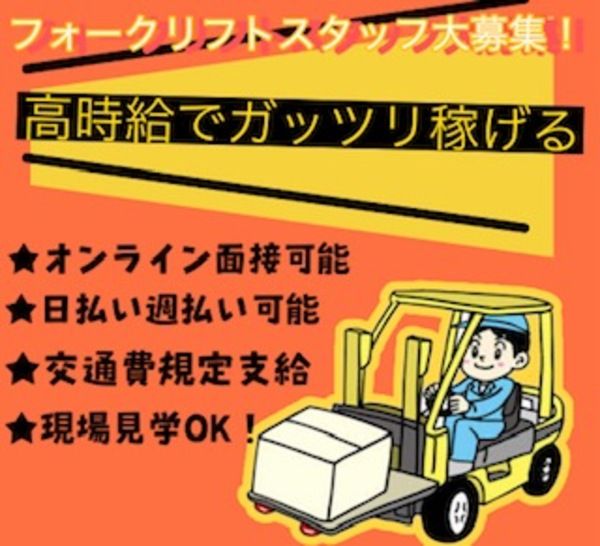 対象となる方 | 応募資格 フォークリフト運転技能講習修了者 モクモク作業がお好きな方 二交代制をお探しの方 *服装自由 *髪型・髪色自由 *学歴不問 *ブランクOK *管理職・マネジメント経験歓迎 *業界未経験歓迎 *女性が活躍中 *経験不問 |