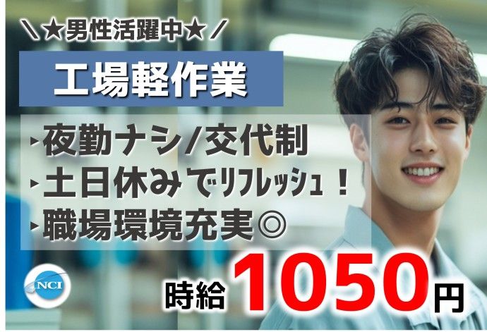 PR・職場情報 ===ここがポイント=== ■未経験スタートOK! ■朝勤・中勤の交代勤務で 体の負担も少なめ! ■土日休みでプライベートも充実! ■ミドル世代男性活躍中! ■正社員登用の可能性もあり! =============== ▼即日の社会保険加入OK▼ NCIでは入社日当日からの社会保険加入もOKです! 即日加入希望の方はお申し付けください! ▼管理体制抜群▼ スタッフさん1人1人に担当営業がついています! お仕事の悩み事などあればすぐにフォローできます◎ ▼他にもたくさんの求人あり▼ 登録時、実際にお話を聞いてみて 「何か少し違うな・・・」と思うことがあれば別のお仕事も可能ですのでお気軽にご登録及びご相談ください♪ ▼安心のフォロー体制▼ 就業してからも当社営業スタッフがしっかりフォローしますので、派遣が初めての方や未経験のお仕事に不安のある方も安心してお勤めいただけます!! 求人の特徴 ====こんな方におすすめ!==== ■製造のお仕事に興味がある! ■資格や経験ゼロでも働ける仕事がいい! ■未経験でも活躍できる仕事がいい! ■正社員になれるチャンスあり! ===================== 【お仕事開始までの流れ】 STEP1: 営業社員との面談、登録 STEP2: 職場見学 STEP3: 入社書類取り交わし STEP4: お仕事開始 ※平日18時以降の面談や オンライン対応も可能です。 ご希望の方は遠慮なくお問い合わせください! - この求人以外に派遣・バイト・アルバイト・ パートや軽作業、製造、事務 のお仕事に興味のある方、 短時間、短期・長期歓迎です。 新潟市、弥彦村、燕市、三条市、 加茂市、長岡市でお仕事をお探しの方、 未経験、ハローワークでお探しの方も お問い合わせください。 - 〒950-0964 新潟市中央区網川原1-15-23新光ビル4F 株式会社 NCI 新潟支店 電話番号:0120-477-799 (※お電話にてご応募の際は「求人サイトを見て」とお伝えください!) 一般労働者派遣事業許可番号:派07-300732 職業紹介事業許可番号:07-ユ-300310 求人ポイント シニア応援,社員登用あり,残業なし,交通費支給,即日勤務OK,急募,主婦・主夫歓迎,長期,新卒,フリーター歓迎,バイク通勤OK,給料前払いOK,学歴不問,車通勤OK,残業月20時間以内,転勤なし,未経験者歓迎,経験者歓迎,リモート面接OK,社会保険完備,制服貸与,ブランクOK,育休制度あり,U・Iターン歓迎,シフト制,40代以上応募可,第二新卒歓迎,履歴書不要,産休制度あり,髪型・髪色自由,週5からOK,産休・育休取得実績あり,固定時間制