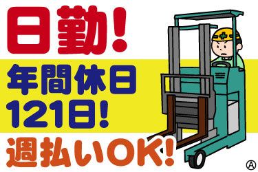 フォークリフト作業の経験活かせます! 日勤!日曜+平日1日休み!未経験者もOK! 車通勤OK!