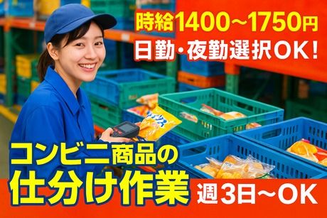 【日勤or夜勤選択OK】<<時給1400~1750円>>人気の軽作業で大募集!◎週3日~相談OK