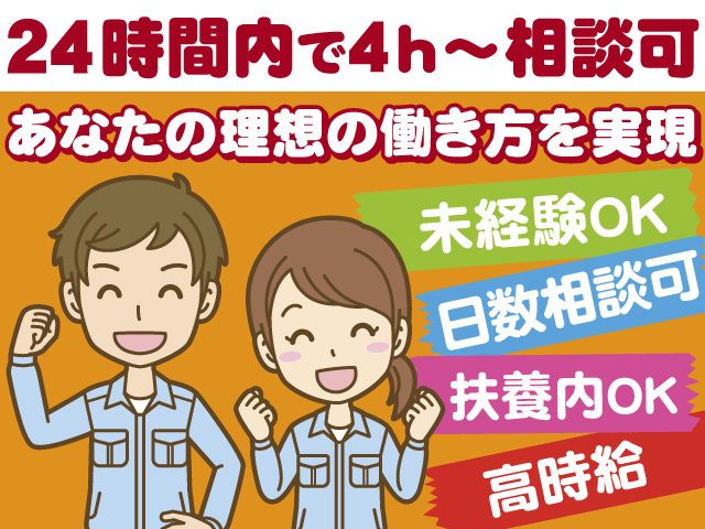 <24時間内で1日4時間~勤務OK> Wワーク・扶養内勤務OK! 未経験でもスグに覚えられる簡単作業