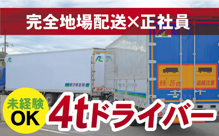 未経験・経験者OK/月給25万円~/完全地場4tドライバー/入社祝金5万円/中型免許も活かせる