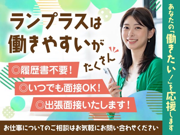 職種/仕事内容 | 仕事内容 \扶養内勤務OK!週3日OK!短時間OK/ ⭐お好きな時間に働ける! ⭐1日6時間からOK! ⭐平日の週3日からOK!土日祝休み! ⭐食堂あり!毎日できたてごはんが食べられる! ⭐未経験でも安心!しっかり研修あり! ⭐工場見学OK!働く前に職場を見れるから安心! ▼職場について \大手メーカーで安定!/ 半導体部品の製造メーカー 手のひら部品なので、 手の小さい方でも作業しやすい! ▼お仕事内容 クリーンルーム内でのオシゴト! ◎金属部品の組立 土台となる部品にネジやパーツを ドライバーで組み立てる ◎樹脂製品の組立 手でカチッと組み立てる ◎できあがった製品の外観検査 キズの有無をチェック! -▽ここがポイント▽- ☆ランプラスは働きやすいがたくさん☆ ◎履歴書不要! ◎いつでも面接OK! ◎出張面接いたします! あなたの「働きたい!」を応援します♪ お仕事についてのご相談はお気軽にお問い合わせください★ |