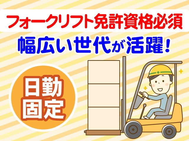 【高時給!フォークリフト免許必須】 履歴書不要◎男性活躍中◎長期安定◎
