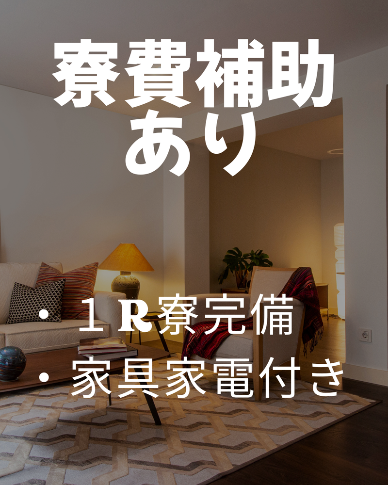 待遇・福利厚生 | 【保険制度】 雇用保険、労災保険、健康保険、厚生年金 【福利厚生】 待遇・福利厚生 【福利厚生】 ■社会保険あり ■交通費規定支給 ■制服一式貸与(1セット) ■1R寮完備 ■寮費補助あり ■食堂あり |