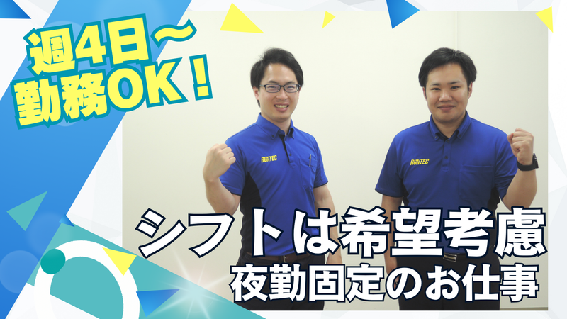 勤務時間 | 固定時間制 勤務時間詳細 22:00~7:00(実働8時間、休憩1時間) 週4日~OK/シフト制 ◎夜勤固定 ◎シフト制なので希望が ある場合はお伝え下さい。 ◎スタッフさんの希望を 考慮してシフトを組んでいきます。 ◎ご家庭の都合での お休みもお気軽にご相談下さい。 |
