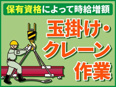 男性が8~9割の職場!玉掛け・クレーン免許お持ちの方必見!16:45までの勤務で私生活も充実◎