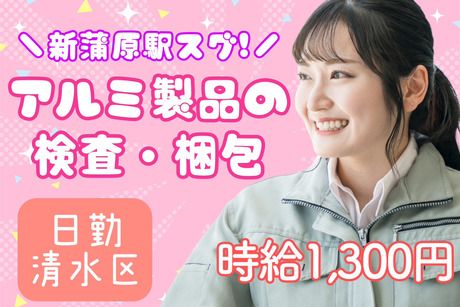 職種/仕事内容 | 仕事内容 特別なスキル必要なし♪アルミ材を検査して梱包するお仕事です♪ 静岡市清水区蒲原の窓のサッシなどに使用するアルミ材を製造している工場でのお仕事になります。 研磨されたアルミ材の検査・梱包等の軽作業をお任せします。 ペアでの作業なのでチームワークを大切にできるお仕事です♪ 【作業内容】 (1)アルミ材にキズや汚れ等がないか目視検査 (2)アルミ材の両端を2名で持ちパレットに積み込む (3)梱包(結束・ビニール掛け)をして出荷準備 ※扱う資材のサイズは3~5m程で重さは最大で15kg程度になり、基本2名での作業となります ★ペアで作業を行うので未経験からでも始めやすいですよ♪ ★ペースがゆっくりめなので焦らず作業できます ★20代30代40代の女性が活躍している職場です!! ★入社特典★入社後1年間、月額2万円の寮費補助あり!日勤土日休みで残業少なめだから適度に働ける♪ ★入社特典★入社後1年間、特別手当2万円支給!(出勤率90%以上の方が対象) ◆月収例227,825円(月21日出勤) ◆時給1300円 ◆人気の日勤土日休み ◆残業少なめ!月0~10時間程 ◆20代30代40代女性活躍中 こんな方におススメ★ ・日勤土日休みで残業が少なめの仕事を探している ・ライン作業は苦手だから落ち着いて作業できる仕事が良い ・女性が活躍している職場が良い ・駅チカで電車でも通えると助かる ・工場見学をして納得して働きたい 駅チカだから電車通勤できる♪もちろんマイカー通勤もOK! ◆新蒲原駅より徒歩10分 ◆公共交通機関通勤の方多数 ◆車通勤可・敷地内駐車場あり ◆交通費規定支給(上限12,827円) ◆入寮もOK!家具家電付き1R個室寮をご用意 あなたの強み、私たちが一緒に見つけます。 「自分に向いている仕事が分からない」 「派遣は初めてで不安」 そんな方こそ大歓迎。 経験豊富なコーディネーターが あなたの希望やこだわりを丁寧にヒアリングし、 無理のない働き方をご提案します。 万が一のトラブルにも即対応。 働き始めてからの悩みや不安も、気軽に相談できる体制です。 さらに ・社会保険完備 ・有給消化率ほぼ100% ・定期健康診断あり ・入社時期の相談OK 「安心して長く働ける」環境づくりを大切にしています。 |