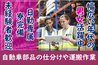 職種/仕事内容 | 仕事内容 ≪小物部品のピッキング・仕分け作業≫未経験者OK◎カンタン作業で時給1,250円!幅広い年齢層の男女が活躍中の現場です!シフト勤務で平日を自由に使える☆ <仕事内容> ■ピッキング・仕分け 小型の自動車部品の仕分け・梱包・棚入れやピッキング・出荷の作業をお手伝いいただきます。 商品は手のひらサイズ(小さいゴム製品)から大型(ドア)まであり、細かく部署が分かれていますので、ご自身の体力に合わせてご相談ください。 男女とも活躍中!! 立ち作業でのお仕事です。 個人作業となります。 ≪職場環境≫ 男女活躍中の職場です。 CDP派遣スタッフが在籍中です。 外国籍の方活躍中 ロッカー有り|シャワールーム有り|休憩室完備 アピールポイント <仕事内容> ■ピッキング・仕分け 小型の自動車部品の仕分け・梱包・棚入れやピッキング・出荷の作業をお手伝いいただきます。 商品は手のひらサイズ(小さいゴム製品)から大型(ドア)まであり、細かく部署が分かれていますので、ご自身の体力に合わせてご相談ください。 男女とも活躍中!! 立ち作業でのお仕事です。 個人作業となります。 ≪職場環境≫ 男女活躍中の職場です。 CDP派遣スタッフが在籍中です。 外国籍の方活躍中 ロッカー有り|シャワールーム有り|休憩室完備 \充実した福利厚生/ ◎社会保険・雇用保険完備 ◎有給休暇有(6ヶ月経過後、10日付与)※規定あり ◎残業手当 ◎交通費支給(規定内) ◎確定拠出年金制度 ◎週払い制度(週3回対応) ◎お友達推薦制度あり(規定有り) ※1名につき3万円~10万円臨時給与として支給 ◎1K寮完備 ◎社員食堂あり ◎シャワールームあり ◎ロッカー・休憩室利用可 ◎福利厚生プログラム (宿泊、グルメ、ショッピングなど大幅割引が受けられる10万アイテムのメニューがあります。) お友達同士のご応募もお待ちしております!! |