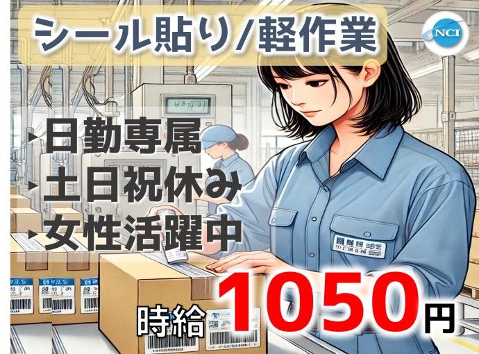 【未経験スタートOK!30代、40代、50代女性活躍中】プラスチック製品のシール貼り★土日祝休み!