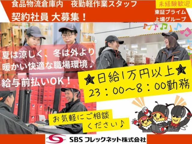 職種/仕事内容 | 仕事情報 ● 仕事内容 コンビニ向けの常温及び冷蔵食品(牛乳やヨーグルト、お弁当等)の入荷・仕分け・出荷のお仕事です。間違いを減らすために業務を簡素化していますので、初めての方も覚えやすいお仕事です。商品は軽くて持ちやすく(3KGほど)、かご台車を使用いたしますので、体力的な負担が少なく健康的に働けます。 未経験でも簡単お仕事 商品のバーコードを読み込み、店舗ごとに仕分けするお仕事です。モクモク・コツコツとお仕事したい方におすすめです。先輩スタッフが丁寧にサポートいたしますので、安心してお仕事を始められます。シフト調整もお気軽にご相談ください。倉庫内は10℃となっており、清潔で夏は涼しく冬は外より暖かい環境となっております◎ 有給休暇とりやすさ 職場内では役職者も含めて全員が「さん」付けで呼びあい、みんなが遠慮なく意見を言い合える環境づくりを心がけています。ご希望のお休みも取りやすい環境です。希望シフト提出時に、お気軽にご相談ください。プライベートとお仕事のメリハリをつけて働けます。 スタッフの健康をサポート グループの健康保険組合では、常備薬の割引や、24時間健康相談、インフルエンザワクチンの接種の補助など健康を保つためのサービスが目白押し。セカンドオピニオン・医師紹介サービスもしていますので、健康に不安があった際には活用ください。健康的に長く安定して働くことができる職場です。 SBSフレックネットとは SBSフレックネットがお届けするのは、お客さまの生活に欠かせない食品。会社の強みである輸配送全国ネットと、低温管理ノウハウは、お客さまの安心安全な「食の当たり前」を支えます。東証プライム上場グループで業界トップクラスの品質と実績を持つSBSフレックネットで更なる成長を目指し誇りをもってお仕事しませんか? |