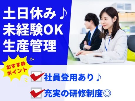 職種/仕事内容 | 仕事内容 \ここがポイント/ ★大企業で安定した生産管理のお仕事♪ ★営業担当と工場スタッフの間に立って調整を担当◎ ★研修制度が充実しており、未経験でも安心! *・。・。*・。・。*・。・。* <仕事内容> \日用品の生産管理業務/ 営業担当と工場スタッフの間に立ち、スケジュールや生産計画の調整を行います。 関係部署と連携しながら、スムーズな生産進行をサポートします。 【お仕事の流れ】 Step(1):営業担当からの生産依頼内容を確認 Step(2):工場スタッフと打ち合わせ、スケジュール調整 Step(3):調整したスケジュールを管理し、進捗を確認・フォロー 研修を通じて少しずつ業務を学べる環境なので、初めての方でも安心してスタートできます。 ※就業後、上記業務から変更はありません *・。・。*・。・。*・。・。* |