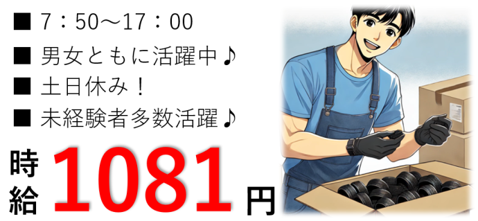 PR・職場情報 =====ここがポイント===== ■未経験で出来る単純作業! ■完全日勤のみ!土日休み! ■20代~50代の方が多く活躍中! =================== ◇NCIのここがオススメ!◇ ▼社会保険にすぐ入れる!▼ 入社日当日から加入できます♪ ▼サポートバツグン!▼ 一人ひとりのスタッフさんに 担当営業が付いて 就業を全力でサポート! ▼ほかにもたくさんの求人あり!▼ 実際にお話を聞いてみて 「何か違うな・・・」と 思うところがあれば 別のお仕事のご紹介も可能です! まずはお気軽にお電話 or フォームから ご応募ください♪ 求人の特徴 ■■■お仕事ポイント■■■ ≪工場、製造、梱包、出荷の お仕事をお探しの方オススメ≫ 〇鉄道用ゴムパッドを 製造する工場において 出荷用に梱包・荷造りをする お仕事です! 〇ゴム素材を段ボールに詰め込んで パレットに運ぶだけの単純作業! 〇ライン作業ではありませんので 焦って作業を することはありません! 〇作業自体は単純なものなので 資格も経験も一切必要なし! どなたでも活躍できる コツコツ作業なんですよ!! 〇休日は土日休みなので 自分の時間をしっかり確保しながら お仕事することができちゃいます! 〇就業してからも当社営業スタッフが しっかりフォローしますので 派遣が初めての方や 未経験のお仕事に不安のある方も 安心してお勤めいただけます!! ===こんな方にオススメ=== ■経験がなくてもやれる作業希望! ■工場で働きたい! ■製造業の経験を活かしたい! ■土日休みを希望! =================== 20代~50代の方が多く活躍中! お仕事についてのお問合せだけでも お気軽にどうぞ!! 【お仕事開始までの流れ】 1、まずはお気軽に下記応募フォームからご応募ください! 2、採用担当より追ってご連絡をいたしますので面談日時を調整します! 3、スタッフ登録を兼ねた面談と職場見学を行います! 4、入社が決まったら弊社事務所にて入社手続きを行います! 5、お仕事スタート!! ※平日18時以降の面談やオンライン対応も可能です。 ご希望の方は遠慮なくお問い合わせください! ご不明点等ございましたらお気軽にお問合せくださいませ。 - この求人以外に派遣・バイト・アルバイト・パートや軽作業、製造、事務のお仕事に興味のある方、短時間、短期・長期歓迎です。 白河市、西白河郡、東白川郡、石川郡、岩瀬郡、栃木那須エリアでお仕事をお探しの方、未経験、ハローワークでお探しの方もお問い合わせください。 - 〒961-0908 福島県白河市大手町12-1 駅前田部井ビル2階 株式会社 NCI 白河支店 電話番号:0120-744-555 (※お電話にてご応募の際は「求人サイトを見て」とお伝えください!) 一般労働者派遣事業許可番号:派07-300732 職業紹介事業許可番号:07-ユ-300310 求人ポイント シニア応援,社員登用あり,残業なし,交通費支給,即日勤務OK,主婦・主夫歓迎,長期,フリーター歓迎,バイク通勤OK,給料前払いOK,学歴不問,車通勤OK,残業月20時間以内,転勤なし,未経験者歓迎,経験者歓迎,リモート面接OK,研修あり,社会保険完備,制服貸与,50代以上応募可,ブランクOK,育休制度あり,U・Iターン歓迎,家庭都合休OK,禁煙・分煙,長期休暇あり,40代以上応募可,第二新卒歓迎,産休制度あり,留学生活躍中,週5からOK,産休・育休取得実績あり,固定時間制