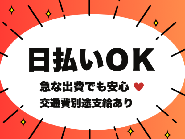 給与 | 時給1,068円以上 給与 時給:1,068円 〜 交通費別途支給 試用期間 試用期間:なし |