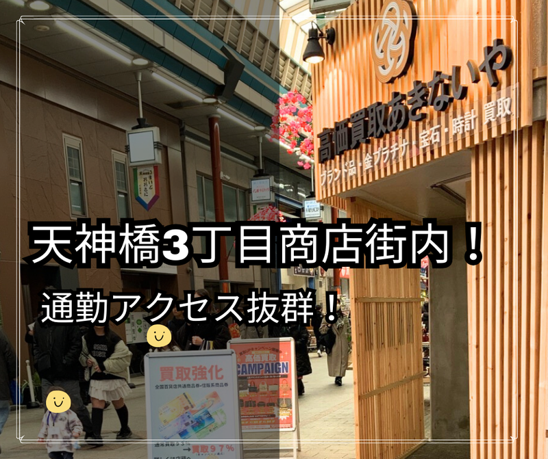 勤務地 | 高価買取 あきないや 天神橋3丁目店 530-0041大阪府大阪市北区天神橋3丁目7-19 |