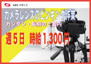 職種/仕事内容 | 仕事内容 倉庫内軽作業/週5日勤務可能な方//未経験歓迎! 未経験でも、問題なし! カメラレンズのピッキング作業のご案内 作業そのものは、とてもカンタンなお仕事です。 カメラのレンズを、指示のもと、ピッキングしていきます。 丁寧な作業が好きな方向けのお仕事となります。 時給は、1,300円の高時給! 登録後、すぐに勤務OK! ぜひ、ご応募をお待ちしています。 ・休憩室完備 ・個人ロッカー完備 ・洗面所、男女別完備 ・通勤は、大森駅からお仕事先無料送迎あり ※自転車通勤もOK! ・屋内原則禁煙(喫煙スペースあり) その他 ※残業基本なし ※幅広い方が活躍中! [こんな人が活躍] 黙々と出来る方が活躍中! |