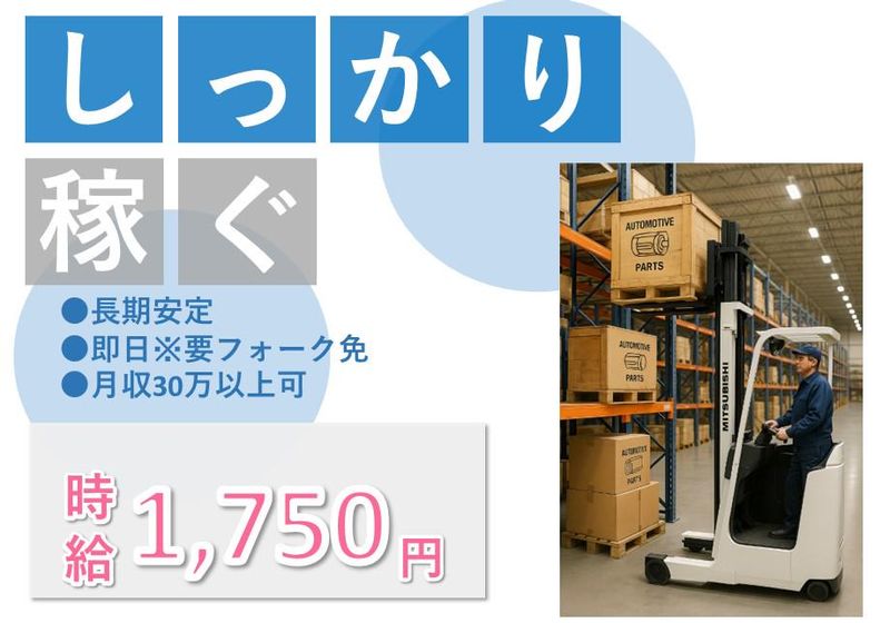 職種/仕事内容 | 仕事内容 【新しい倉庫でのお仕事です】 長年の経験を活かして、安心して長く働ける環境を探している方へ。今回ご紹介するのは、固定勤務地で腰を据えて働ける倉庫内作業のお仕事です。扱うのは自動車部品(比較的小さめ)でリーチフォークを使って作業経験をお持ちの方なら、すぐに慣れて抵抗なく始められる内容です。さらに嬉しいのは、土日休みに加えて大型連休も完備している点。仕事とプライベートをしっかり分け、無理なく続けられる環境が整っています。実際に同年代の仲間も多数活躍中で、現場の雰囲気も安心。これまでのキャリアを活かしながら新しい環境で長期的に活躍したい方にぴったりです。 【お仕事内容】 ✅部品の仕分け作業 自動車系小物部品を扱っています。 ✅部品の運搬作業 集めて欲しいリストを見てリーチフォークで決められた場所へ運んでください。 ✅部品の格納作業 入荷した荷物を棚や決められた場所へ移動します。 ✅基本、リーチフォークで作業します。 忙しい時はピッキングなどもお手伝いします。 ✅入社後は社員の方が横について一緒に作業をしながら教えてくれます。 【辻総合クリエートの強み】 横浜営業所では、派遣先に何度も足を運び皆様の仕事での困りごとを聞いたり、当社スタッフで一緒に昼食をとったり、集まって談笑したりと和気あいあいとした職場をつくっています。 登録からお仕事開始後まで何度もお顔合わせると思いますのでなんでもお気軽にお声をかけてくださいね! |