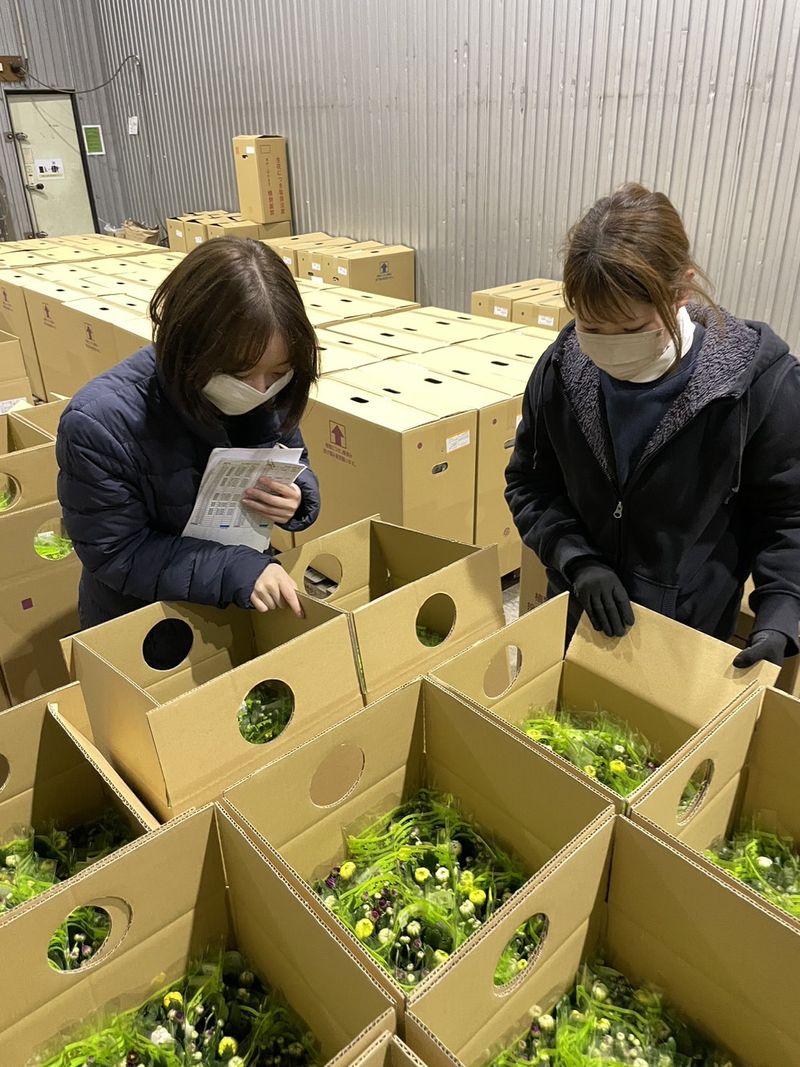 職種/仕事内容 | 仕事内容 季節限定の短期バイトの募集です! 花の仕分け作業になります。 【作業の流れ】 花屋さんから段ボールが届き、倉庫へ卸します。 その後仕分け、各配送先へ出荷します。 お任せする作業は ・段ボールにかかれている番号ごとに仕分け(配送先・日付) ・対象のパレットに運ぶ(1段ボール最大6キロ程度) この2つの繰り返しで当日の仕分け分が終了次第、業務終了となります。 花が出荷前に咲かないように冷蔵倉庫内での作業になります(2~5℃) 暖かくして作業ください! 年始やお盆のタイミングで同様の短期の仕事があります。 実際に高校生から初めて就職するまでの間 お勤めいただいた方もいらっしゃいます☆ |