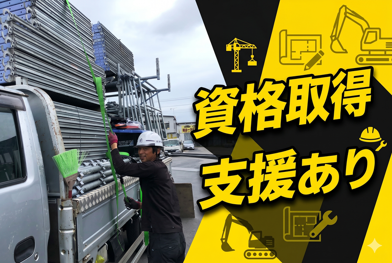 対象となる方 | 求めている人材 ✅未経験OK ✅学歴・前職・ブランク不問 ✅足場鳶・橋梁・鉄骨・土木足場の 経験活かせます!(年数不問) \ 将来のプロを大切に育てます / 知識や技術は、入社後に一つずつ 身につけていけば問題ありません。 まずは「元気に挨拶ができる」 「約束を守れる」といった、 当たり前のことから始めましょう! \ こんな方はぜひご応募ください / *高収入を得て生活を安定させたい *一生使える資格を身につけたい *地元や通いやすい場所で定着したい 【下記の資格をお持ちの方歓迎】 ・普通自動車運転免許(第1種) ・中型自動車運転免許(第1種) ・フォークリフト運転員(1t以上) ・玉掛技能者(1t以上) ・フルハーネス型墜落制止用器具特別教育 ・職長・安全衛生責任者教育 |