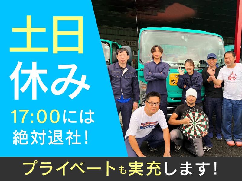 対象となる方 | 求めている人材 <必須条件> ✅準中型免許(5t限定解除) *平成29年3月以前に取得された普通免許 ✨未経験歓迎 ✨第二新卒・フリーター歓迎 ✨学歴・職歴・知識は一切不問! \ 20代~40代の男女が活躍中! / 現在は約14名のスタッフが在籍。 (男性12名・女性2名) 30代・40代の女性スタッフも 活躍している職場です! 「家族との時間が欲しい」 「趣味の時間を増やしたい」 「子供が大きくなったから復帰したい」 そんな思いで入社した先輩ばかりなので あなたの気持ちもよく理解してくれます◎ \ こんな方はぜひご応募ください / *17時には仕事を終えて帰りたい *土日は休んでリフレッシュしたい *慣れ親しんだ地元で貢献したい *少人数のアットホームな職場で働きたい |