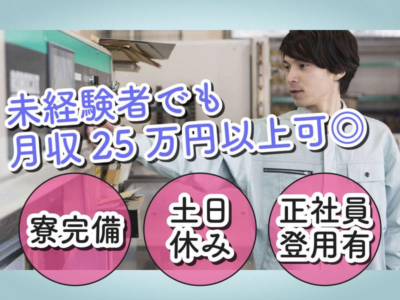 職種/仕事内容 | 仕事内容 【新着求人】派遣社員募集 \"安定した生活"と"安心の将来"を手に入れませんか?/ 「将来のために稼ぎたい」 「生活基盤を整えたい」 フジワークが全力でサポートします! ――――――――――――――― ✅月収25万円以上!賞与・退職金制度あり ✅人気の日勤&土日祝休み(大型連休あり) ✅家具家電付き寮完備! ✅社員食堂あり!生活費も節約◎ ✅派遣から正社員へ! キャリアアップも目指せます ✨面接1回でスグにお仕事始められます◎ ✨未経験・無資格OK! ――――――――――――――― 【お仕事の詳細】 装置部品の成形加工業務をお願いします。 シンプルな作業なので 未経験の方も安心。 丁寧な研修制度もありますよ◎ *工場勤務の経験のある方は即戦力に! *フォークリフトや玉掛クレーンなどの 免許をお持ちの方は尚大歓迎です◎ ――――――――――――――― 【仕事とプライベートの両立OK】 人気の日勤(8:30~17:05)×土日祝休みのお仕事! 家族や友人との時間、 自分の趣味の時間など、 オンオフをしっかりと 切り替えて生活できます! 大型連休(年末年始、GW)もありますよ! ――――――――――――――― 【福利厚生が充実】 社員寮(1R/家具家電付)を完備しており ウェルカムパック(生活用品)もプレゼント! 「地元に戻って働きたい」 「遠方でも稼げるお仕事がしたい」 という方も大歓迎! 社員食堂も完備しておりますので、 昼食や夕食を格安で食べることもできますよ◎ ――――――――――――――― 【安定した生活・将来が手に入る!】 経験・学歴は不問です。 未経験の方も充実した研修があるので 始めやすさ、続けやすさには自信があります! 「家賃/生活費が足りなくて生活が安定しない」 「将来のために少しでもお金を稼ぎたい!」 こんな方も大歓迎です! フジワークで安定した生活と将来を 手に入れませんか? 社員登用制度もあり、正社員も目指せます◎ また「成長・キャリアアップしたい」意欲を 「資格取得促進支援制度」で全力で応援します。 業務でスキルを磨きながら、 実務経験が必要な専門資格の取得も 目指せる環境です。 ――――――――――――――― 【会社について】 現在お仕事中の方も 入社日のご希望など いろいろとご相談ください。 http://www.fujiwork.co.jp/ 現在、フジワークでは全国に33ヵ所 海外に1ヵ所の拠点を展開しております。 <希望次第で多様なキャリアを選択可能!> ・現場のプロフェッショナルとして メンバーをまとめる リーダー職へのキャリアアップ ・オフィスでスタッフのフォローや 労務管理業務を行う 人事・総務職へのキャリアチェンジなど、 頑張り次第で豊富な選択肢がありますよ! ――――――――――――――― |
