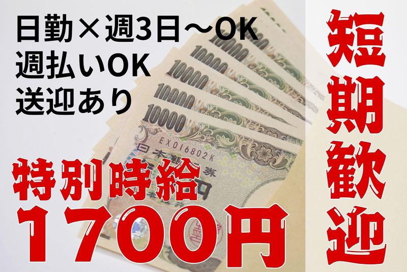 特別時給1700円!月収39万円以上可能!短期も長期もOK!
