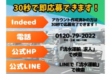 選考プロセス | 採用までの流れ 応募方法 (1)0120-79-2022清水運輸グループ採用 (2)面接(履歴書持参ください) (3)1日体験乗務 *1 (4)採用 ※最短1日で入社可能です! (5)同乗研修 *1 *1:ドライバーのみ 応募フォームをご利用ください。 |