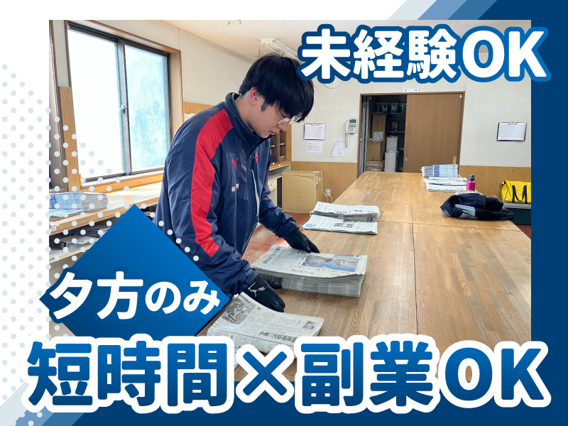 対象となる方 | 求めている人材 【原付免許必須】 ◆新聞配達が未経験の方も大歓迎! ◆未経験歓迎 ◆長期勤務歓迎 ◆フリーター歓迎 ◆Wワーク歓迎 ◆主婦・主夫歓迎 \\夕方の短時間だけ!// ✅難しい仕事は覚えたくない ✅人付き合いが少ない仕事を探している ✅午前や夜に別の仕事をしている ✅決まった作業でコツコツ続けたい ✅無理せず収入を増やしたい ▷▷などにもピッタリです◎ |