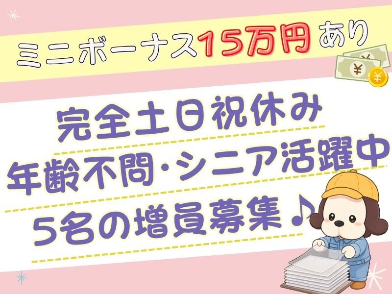 【ミニボーナス15万円支給中】勤務時間選択OK!1日5h~!