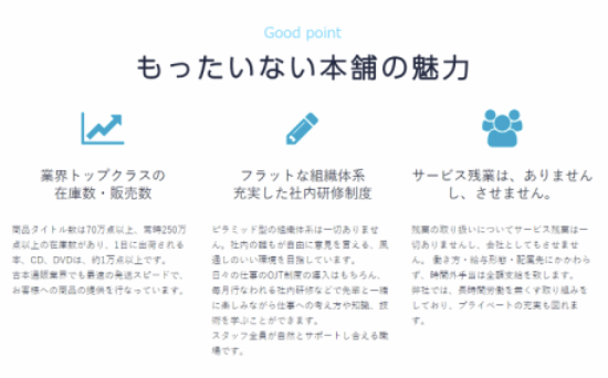 職種/仕事内容 | 仕事内容 \\求人のPOINT// ✅未経験者歓迎! 一連の仕事については、 先輩たちが丁寧にフォローします! ✅社保加入OK! 社会保険完備! 雇用保険・健康保険・厚生年金に加入できます。 ✅万全のサポート体制が整っています。 分からないことや困ったことなど、 先輩たちが親切丁寧にお教えします! ✅学校行事やお子様の急な発熱など、 子育てしている方にはつきものですが、 そんな時のお休みも考慮します。 研修体制が整っているので、 未経験の方でも安心して お仕事いただけます! ⭐仕事内容 ──────────────── 私たちの仕事は多くのお客様から、 捨ててしまうには 「もったいない」気持ちを受け取り、 次に欲しい人へ「つなげる」こと。 リユース(再販売)は小さいことでも、 確かなエコにつながります。 そんな当社のビジネスモデル、 企業理念に共感できる方を歓迎します。 ◎未経験でも安心して働ける環境◎ しっかり研修があるので 安心して始められます。 仕事に慣れるまで先輩社員が、 しっかりフォローしていきます。 ⭐具体的なお仕事  ̄ ̄V ̄ ̄ ̄ ̄ ̄ ̄ ̄ ̄ ̄ ̄ ̄ ̄ ̄ ̄ ✅【商品の仕分け、入力作業】 サイズに応じて仕分けをし、 バーコードリーダーを使用して 登録作業を行います。 ✅【ピッキング&クリーニング作業】 棚から注文商品をピッキングし、 綺麗にクリーニングしたり 必要に応じて研磨を行います。 ✅【商品の梱包&出荷作業】 お客様に商品をお届けするために 梱包と出荷作業を行います。 ✅【買取査定】 お客様から買い取った商品の 査定業務を行います。 配属先により、上記の仕事を それぞれ担当していただきます。 ※一連のオペレーションに伴う 事務作業なども含まれます。 ───【当社について】─── ✨もったいない本舗とは✨ 年間の買取点数は400万点以上! 日本全国のお客様から、 本、CD、DVD、ゲームソフトを 宅配買取という方法でお売りいただき、 自社サイトはもちろん大手ECサイトを通じて リユース(再販売)を行っています。 今回、一緒に働く仲間を募集しております。 これから仲間になる皆さんが、 ストレスなく働ける環境を ご用意しお待ちしております! ✨もったいない本舗HP✨ https://www.furuhonkaitorituhan.com/ ✨もったいない本舗採用情報HP✨ https://www.furuhonkaitorituhan.com/recruit/ |