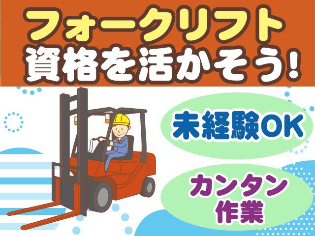 職種/仕事内容 | 仕事内容 大人気の物流倉庫でのお仕事になります! 【お仕事の内容】 フォークリフト作業をおまかせします。 ①伝票をチェック ↓ ②製品を決められた場所に移す 簡単な2ステップ作業になります! フォークリフトにしばらく乗っていない方でもしっかり教えてくれるので安心 【お仕事の特徴】 ・未経験でもOK! ・土日休み!大型連休あり! ・プライベートでの計画が立てやすい ・日勤! ・フォークリフトの資格が活かせる! ・20~50代活躍中! ・安定した収入が欲しい方におすすめ! ・大人気の倉庫内察業! ・カンタン軽作業で楽々ストレスなし! こんな方も活躍中! ・製造業や工場勤務が初めての方 ・安定した職場で安定した収入を得たい方 ・仕事もプライベートも充実させたい方 ・「派遣は初めて!」 「アルバイトしか経験がない…」という方や 「正社員で働くのはちょっと不安」という方 ・製造業に興味を持っている方も ・モノづくりに興味のある方 まずはお気軽にお問い合わせください! |