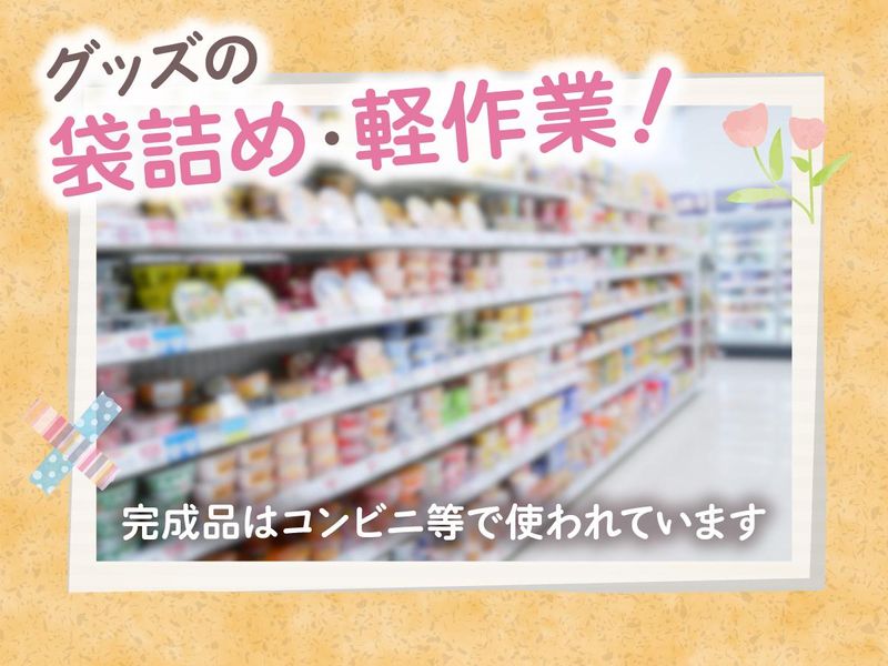 職種/仕事内容 | 仕事内容 ┏━━━┓ ┃注目!┃✅18:00~22:00の"4時間"だけ ┗━━━╋…──────―──────… \こんなあなたをしっかりサポート♪/ 「朝は家事に集中したい」⇒主婦応援✨ 「学校帰りにひと稼ぎ!」⇒学生歓迎✨ ✔ 希望考慮のシフトでOK!週3日~応相談 ✔ 髪型・髪色・ネイル自由でオシャレOK ✔ 扶養内・Wワークなど働き方は自由◎ ◤ ̄ ̄ ̄ ̄ ̄ ̄ ̄ ̄ ̄ ̄ お任せする仕事内容 __________◢ あの人気商品に関われるかも!? 身近な話題グッズの袋詰めなどの軽作業♪ ▢ 箱を組み立てる ▢ 商品を袋に詰める&梱包 ▢ シールを貼る ▢ 出荷準備 …などをお任せ! むずかしい作業は一切ナシ! 未経験の方もすぐに慣れます◎ 「軽作業は初めて…」そんな方も歓迎! 誰でもできるカンタンな作業ばかり♪ 接客ナシで黙々コツコツ集中できる☆ 自分のペースで働きたい方にピッタリ◎ 入社後は先輩がイチからレクチャー! 安心のサポート体制で始められます♪ |