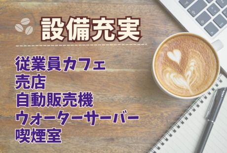 待遇・福利厚生 | 【保険制度】 雇用保険、労災保険、健康保険、厚生年金 【福利厚生】 待遇・福利厚生 【福利厚生】 ○社会保険完備 ○有給休暇 ○産前産後休暇 ○育児休暇 ○健康診断(全額会社負担) ○交通費支給(2万円/月) ○車通勤OK(敷地内駐車場) ○日払い制度(毎週火・金払い) ○正社員登用制度あり ○売店・自販機完備 ○無料ウォーターサーバー完備 |