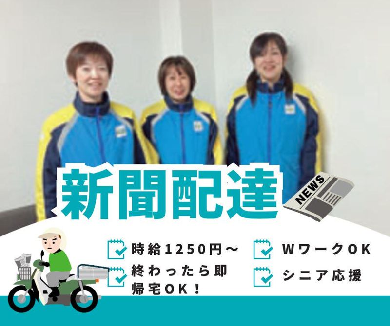 職種/仕事内容 | 仕事内容 *~*~*~*~*~*~*~*~*~* 朝時間の有効活用でお小遣い稼ぎ✨ 配達が終われば即帰宅!! 週2日〜勤務OK!シフト応相談♪ *~*~*~*~*~*~*~*~*~* ★お仕事内容・・・ バイクを使用して朝刊配達をお任せします。 配達エリアは北区(松浜~早通)周辺で ご希望に合わせて決定いたします。 ★更に稼ぎたいという方には・・・ 集金等別の業務もあります!(別途手当有) <アルバイト・パート朝刊作業の流れ> ※配達区域によって多少の時間の変動有 2:00…出勤 配達区域の部数を確認 折込チラシを新聞に入れ配達の準備 2:45…配達開始 5:30…配達終了 終了報告をして、業務終了 ※日によってデリバリー業務あり ――――――――――――――――――― ✨\おすすめポイント/✨ ――――――――――――――――――― ✅未経験者歓迎◎ 一度ルートを覚えれば簡単! 覚えるまで丁寧に指導しますよ☆ ✅高収入が狙える! 時給1313円~☆ 収入の足しにしてください◎ ✅20代~60代まで幅広く活躍中! シニア応援◎ ✅WワークOK! 早朝の時間を活用して副業スタート◎ ――――――――――――――――――― \ ✨活躍するスタッフのコメント✨ / 娘の進学に伴い、少しでも家計の 足しになればと思い始めた新聞配達。 はじめのころは朝早く起きるのが 心配だったけど、慣れてしまえば大丈夫! 早朝のほとんど車も通らない中、 自分のペースで配達できるので 鼻歌まじりで運転したり♪ 3時間ちょっとで配達も終わり、 家に帰って少し寝てから本業へ。 今の収入の不安を減らしたい方、 Wワークにぴったりの職場です! 一緒に働いてみませんか?? |