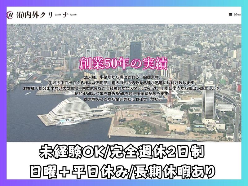 職種/仕事内容 | 仕事内容 ☆中型免許を活かした仕事 ☆年2回の賞与あり ☆安定収入でプライベートも充実 ☆残業ほぼなし&有給休暇も取りやすい ♪Instagramやってます♪ <仕事内容> パッカー車で事業所から出る一般ごみのルート回収をお願いします。 <具体的には> 勤務地は神戸市長田区の倉庫から出社後、 各現場(長田区・兵庫区・西区)に向かって仕事を進めていきます。 業務は二人一組で行い、お互いに協力しながら作業を進めます。 わからないことがあれば、すぐにサポートし合える仲間がいるので未経験の方もご安心ください。 ①お任せするルートは固定で覚えやすい! ②最初はナビを使用して回収ルートを確認できるので安心 ③家財処理業務(遺品整理など)に対応できるようになれば、給与アップ(インセンティブあり) 当社では少人数制だからこそ、風通しがよく働きやすい職場環境を目指しています。 チームワークを大切にしながら一緒に働ける環境です。 体を動かしながら、地域のクリーンな環境作りに貢献できるお仕事です! 一緒に地域を支える大切なお仕事をしませんか? ~創業50年の実績~ 法人様、事業所から排出される一般廃棄物。 生活の中で出てくる様々な不用品、粗大ゴミの処分を私達が迅速に片付け致します。 お客様で処分出来ない大型家電、大型家具なども経験豊かなスタッフが迅速、丁寧に室内から搬出し廃棄します。 昭和48年より業を営み50年を超える実績があります。 |