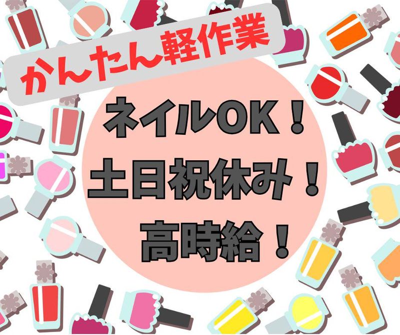 職種/仕事内容 | 仕事内容 【お仕事NO.a_249】 週4日~OK!可愛いコスメや雑貨のピッキング作業や梱包作業をお願いします♪ 可愛い商品に囲まれて働けます♪ ✨コスメ好きにはたまらない職場 ✨重たいものはほとんどありません! ✨髪色、ネイル、ピアス自由! ✨おしゃれを楽しみながら楽しく働けます♡ |