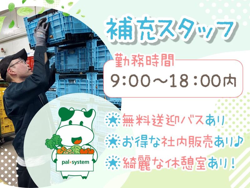 職種/仕事内容 | 仕事内容 【✨お得な社内販売あり✨】 5000円相当の商品が格安数百円で購入できます! 物価が上がっている中、パルラインは家計にも優しいです♪ 。・*パルライン岩槻センター 春の大募集。・* 基本時給1,300円です。 主婦・主夫さん大歓迎です! 一緒にスタートする仲間がたくさん♪ 初めてという方も安心して始められますよ◎ 。・*パルライン岩槻センターの魅力*・。 ✅主夫・主婦歓迎!10代~60代活躍中! ✅未経験可!週3~OK♪働きやすい環境◎ ✅交通費支給、制服貸与、Wワーク・OK! ✅東川口・せんげん台駅から無料送迎バス有 ✅綺麗な休憩室&鍵付きロッカーありで安心 ―――――――――― < お仕事内容 > 段ボールに入った商品を棚に並べて補充! あとは商品の台車を移動するだけ! かんたん&シンプル作業なので、 未経験の方もスグに覚えられますよ♪ \✨未経験スタート大歓迎!✨/ ―――――――――――――― 資格や知識、経験は一切不問です。 CMでもおなじみのパルシステムで安心♪ 大手パルシステムグループで、安定して働きませんか? イチから丁寧に教えていきます◎ \✨通勤らくらく♪✨/ ――――――――――― 東川口駅、せんげん台駅から、 無料送迎バスあり! 車・バイク・自転車通勤もOK! 広々とした駐車場あり♪ \✨働きやすい環境が整っています✨/ ―――――――――――――――――― ・綺麗な休憩室あり ・1人1個使用OK!鍵付きロッカーあり ・フリーWifiあり ・お得な社内販売あり など 働きやすい、好待遇をご用意しています! \✨週3~OK!!✨/ ――――――――――――― ★8時~18時(休憩1時間~) シフトは週3日~OKなので、 無理なく働けますよ◎ 家事や育児などとの両立もしやすいです! シフトはお気軽にご相談下さいね。 |